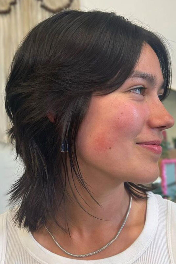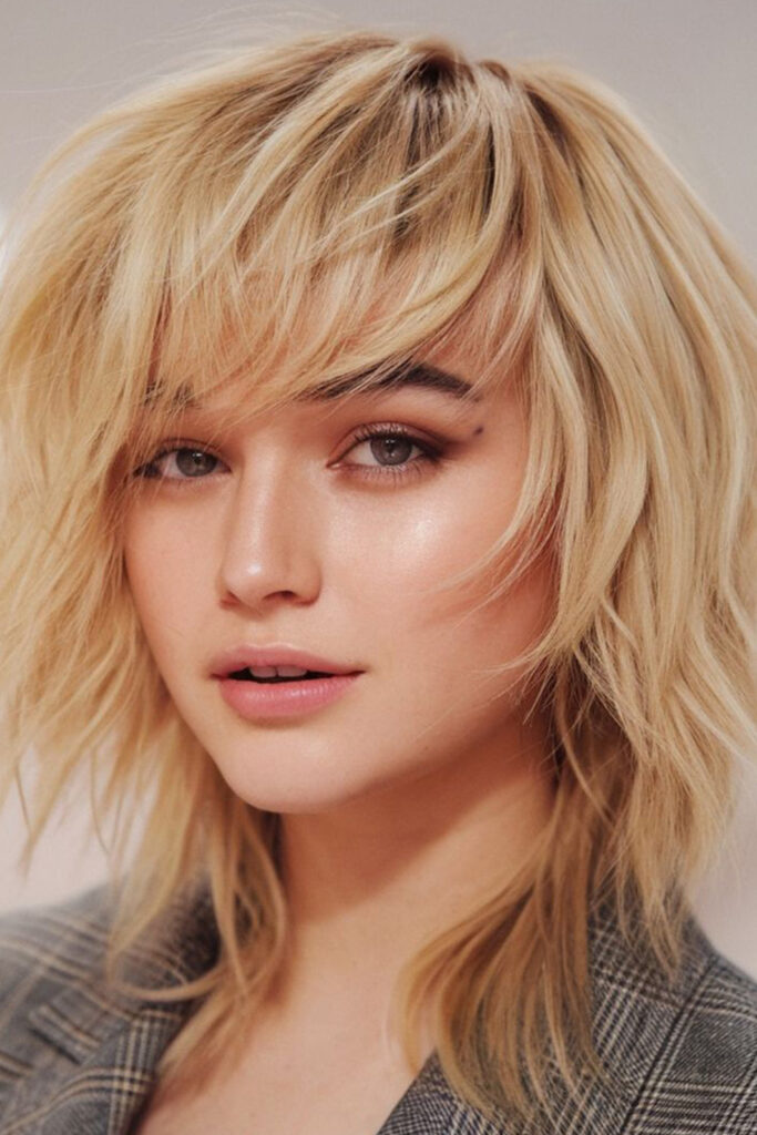 Short wolf cuts feel fresh and modern. Wispy bangs soften the overall look.