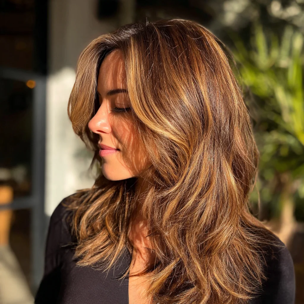 Caramel highlights give a soft and warm look. I notice that they blend naturally with darker hair, creating smooth depth.
