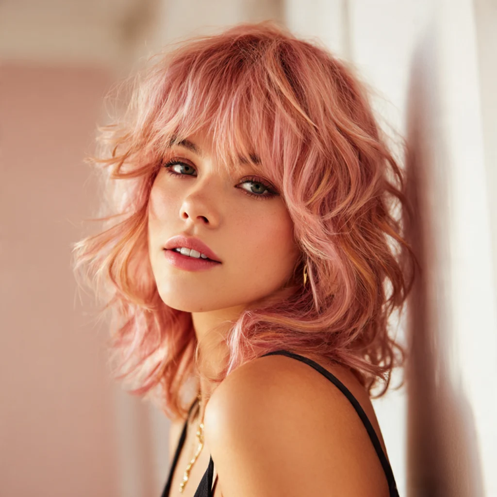 I see pink tones as a fun and creative option. Pastel highlights soften the layers while still adding brightness.