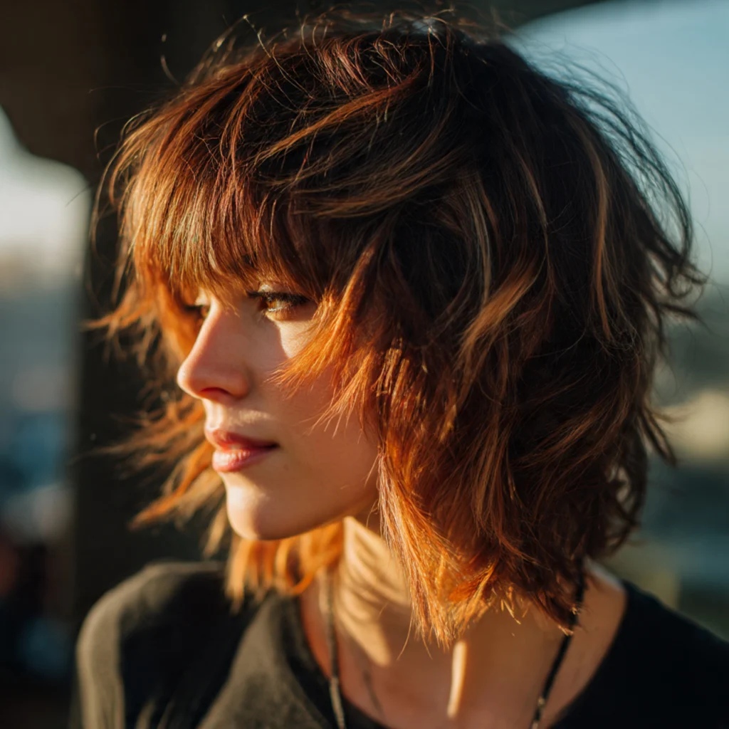 Copper shades add warmth and brightness to the haircut. I notice that the layers look more dynamic with golden tones running through them.